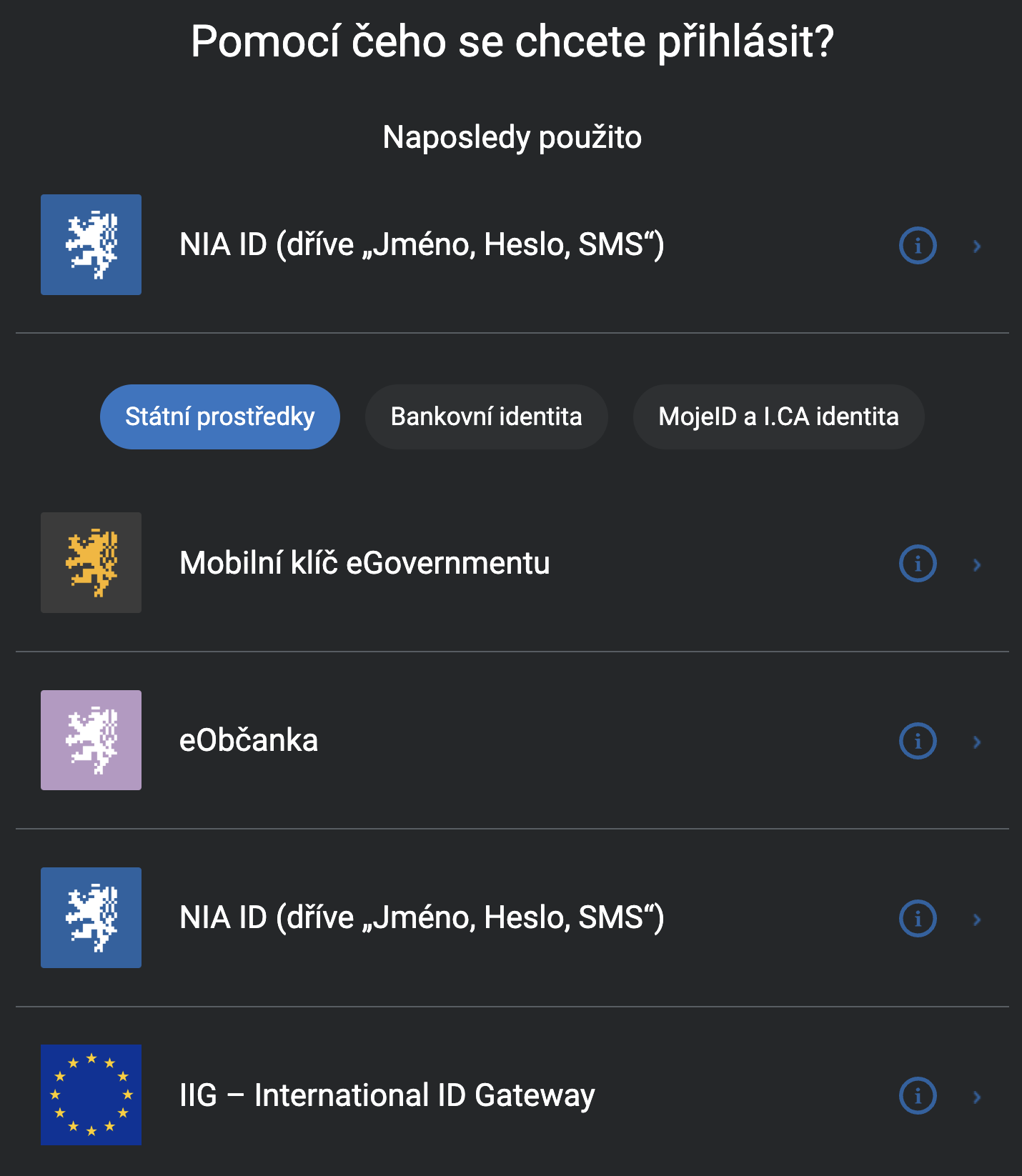 - 🇪🇺 Pokud nejste občanem ČR, ale jste z EU, zvolte možnost IIG – International ID Gateway.