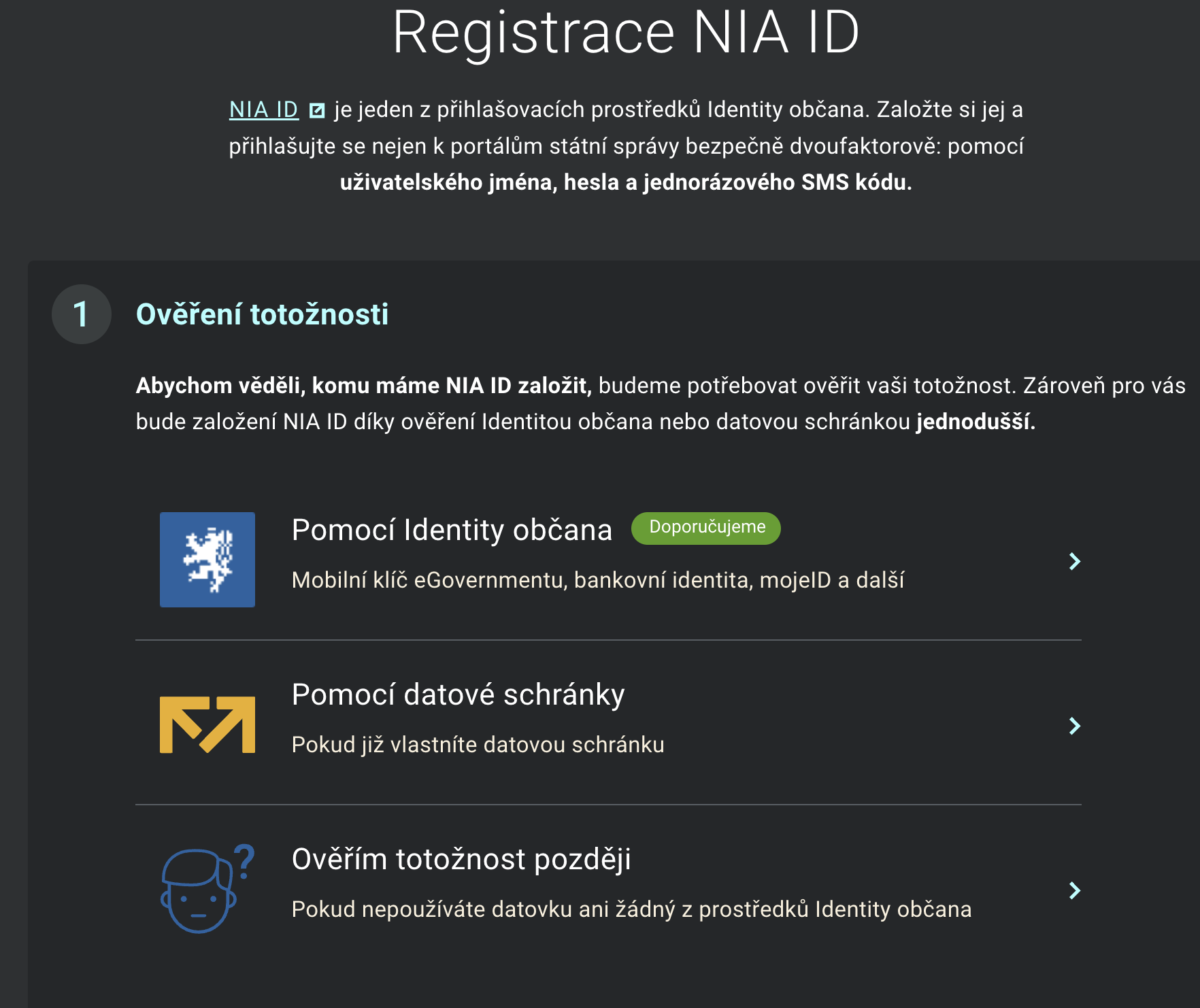 Pokud NIA ID nemáte, nevadí.